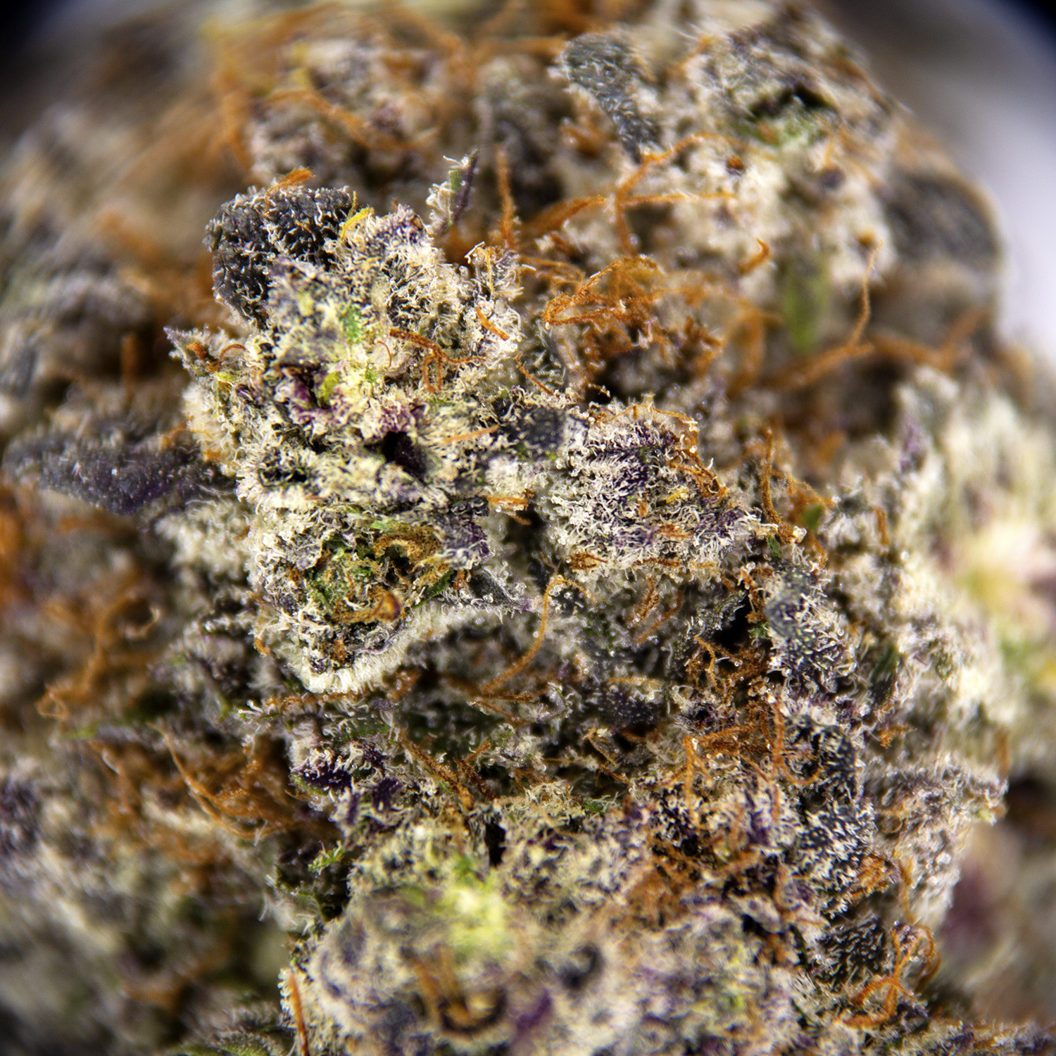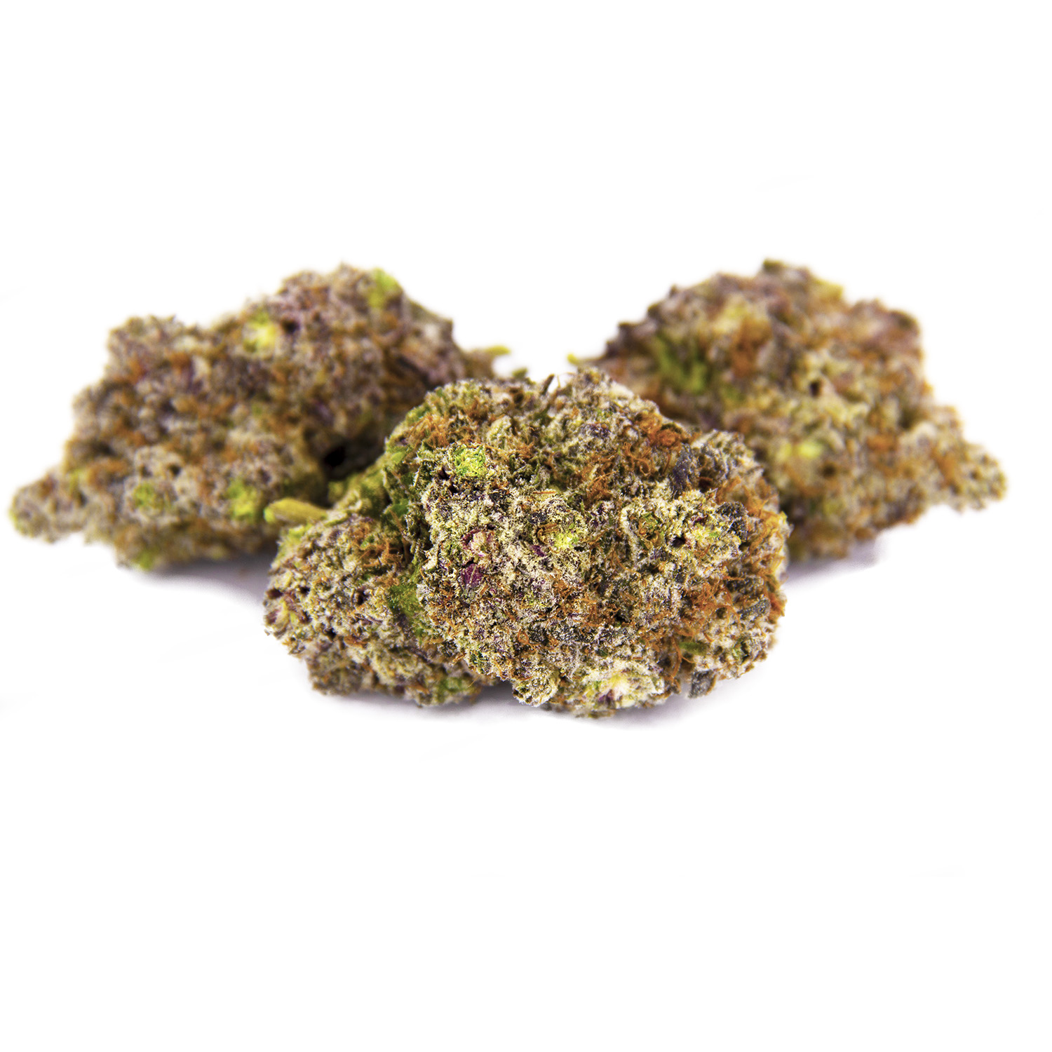 Berry Burst is an evenly balanced hybrid strain (50% indica/50% sativa). This powerful hybrid offers a delicious flavor and a burst of clear-headed effects that will keep your mind active for hours on end. Berry Burst packs an explosively amazing taste into each and every toke, with hints of sweet blueberries, spicy grape wine and sugary raspberries galore. The aroma adds a hint of lemony citrus and flowery rose to the equation with a mellow overtone that is very pleasant. The Berry Burst high will rush into your mind as soon as you exhale, launching you into a high-flying state of euphoria that’s filled with focus and mental clarity. As your mind clears, you’ll begin to feel playful and outgoing, easily jumping into conversations or joining in fun and games with those around you. With these effects and its super high 24-28% average THC level and 0-1% average CBD level, Berry Burst is often chosen to treat a variety of conditions including chronic stress or anxiety, chronic fatigue, ADD or ADHD, depression and bipolar disorder. This bud has oversized, spade-shaped bright neon green nugs with golden undertones, dark blue leaves, thin orange hairs and tiny, blue-tinted white crystal trichomes.
