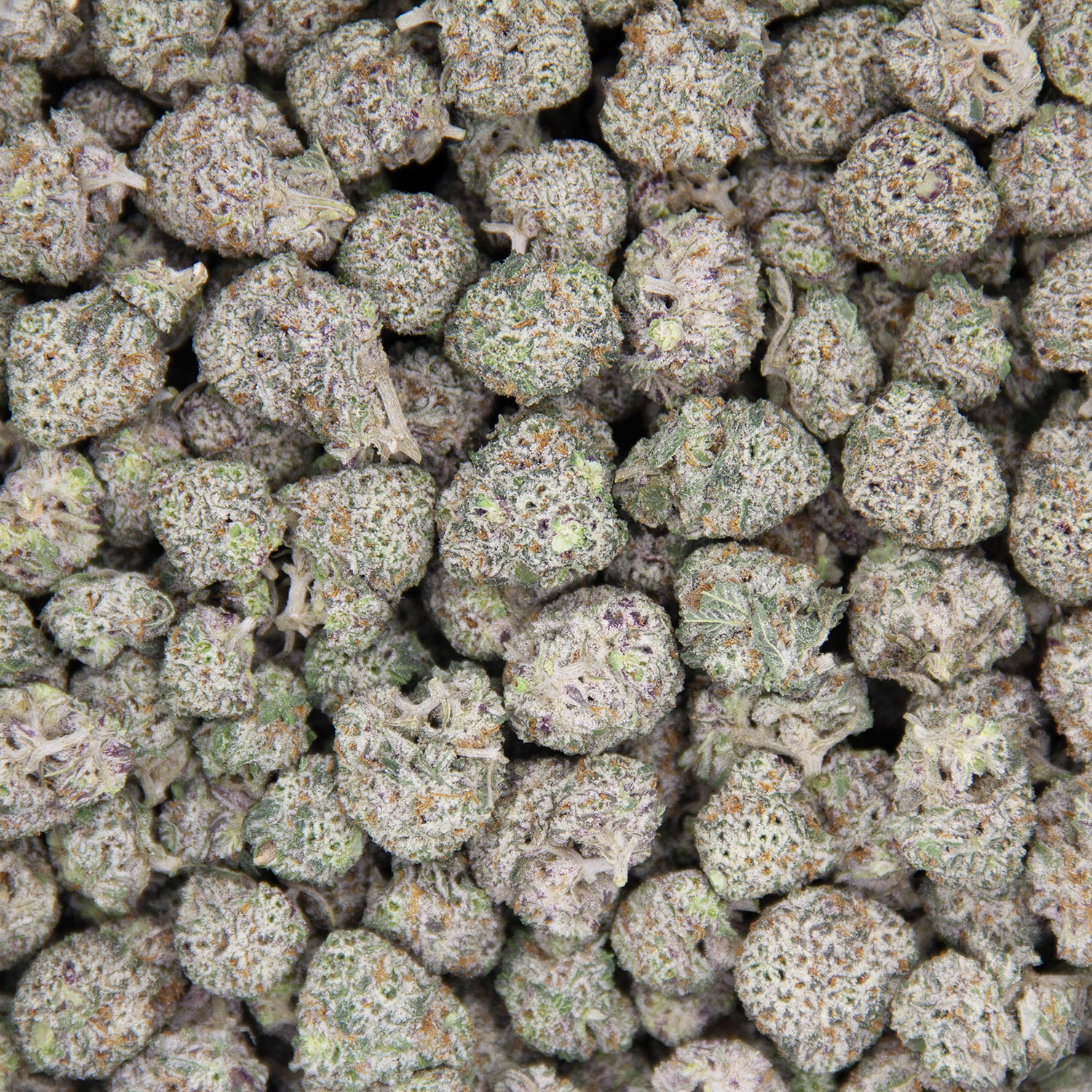 Gorilla Glue #5 also known as “New Glue”, is an indica dominant hybrid strain created through crossing the classic Gorilla Glue #1 X Gorilla Glue #4 strains. This bud takes on a stronger high than both of its parents, packing head-spinning stoney effects that are fueled by a THC level that hits bottom at 28%. The high is a creeper, suddenly taking hold of your entire body with a stoney feeling that leaves you unable to accomplish much of anything. You’ll be hopelessly couch-locked and completely ecstatic to be so, relaxing in utter happiness that’s mind numbing and totally blissful. Thanks to these hard-hitting effects, Gorilla Glue #5 is said to be perfect for treating experienced users who are suffering from condition such as chronic pain, muscle spasms, insomnia, and depression. Gorilla Glue #5 has a classic flavor of dank earthy diesel and spices with a super powerful stench to match that can fill (and evacuate) any room. Gorilla Glue #5 buds have long and piecey light minty green nugs with bright amber hairs and a thick coating of light amber crystal trichomes that looks almost like a blanket of frost.