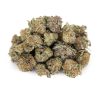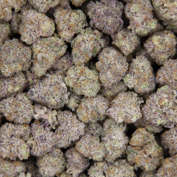 Grape Stomper, also known as “Sour Grapes,” is a sativa dominant hybrid strain created by crossing the classic Purple Elephant X Chemdawg Sour Diesel strains. With its sour taste and sweet sativa heavy effects, Grape Stomper will have you begging for more after just one toke. Its sweet and sour grape candy flavor is deceptively delicious and often leads to users having a little too much at once, especially given that its THC level falls between 18-26% on average. The aroma is just as sweet, with a super strong sour overtone and a fruity candy effect that’s complemented by a potent earthiness that’s released as the nugs are broken apart. The Grape Stomper high is an almost immediate full body experience that is uplifting yet relaxing in nature. The high hits you hard with a tingly punch to the head, pulling your mind into utter bliss and infusing it with a slight sense of social energy. This tingle will spread throughout the rest of your body slowly, laving you completely relaxed and at ease, although not weighed down in the slightest sense. Because of these effects, Grape Stomper is often chosen to treat chronic pain, mood swings, depression, chronic fatigue, and chronic stress. This bud has dense forest green spade-shaped nugs with bright orange hairs and a frosty coating of oversized chunky white crystal trichomes.