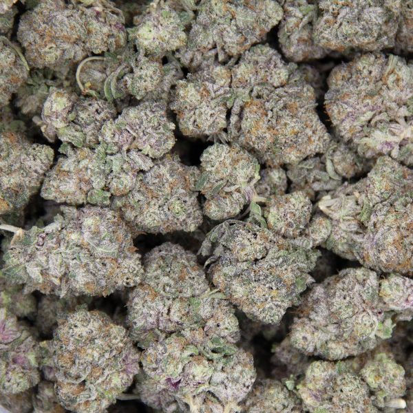 Purple Cherry is an indica dominant hybrid strain (70% indica/30% sativa) created through crossing the iconic Big Daddy Purple X Purple Punch strains. When it comes to the flavor of this bud, the name says it all. Purple Cherry packs a super sweet and fruity cherry berry flavor with a lightly spicy and flowery exhale. The aroma is very similar, with a fruity cherry overtone accented by spicy peppery diesel and a touch of flowery woods. The Purple Cherry high is just as delightful, with a soothing overtone that leaves you feeling fully calmed from head to toe. You’ll feel these effects wash over you a few minutes after your final exhale, settling into your brain with a soothing sense of happy stillness. A lightly tingly creativity comes next, inspiring your mind and helping you to feel more sociable and outgoing. At the same time, you’ll begin to feel your focus fade away, replaced with a happy nothingness that leaves you super giggly. Combined with its high 18-20% average THC level, these effects give Purple Cherry an edge in treating conditions such as depression, chronic stress, mood swings, nausea or appetite loss, chronic fatigue and chronic pain. This bud has rounded fluffy emerald green nugs with dark purple leaves, thin dark amber hairs and a coating of frosty, tiny purple-tinted crystal trichomes.