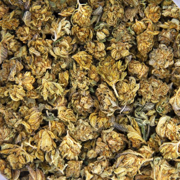 **this is an older crop of greenhouse quality, popcorn-sized buds **